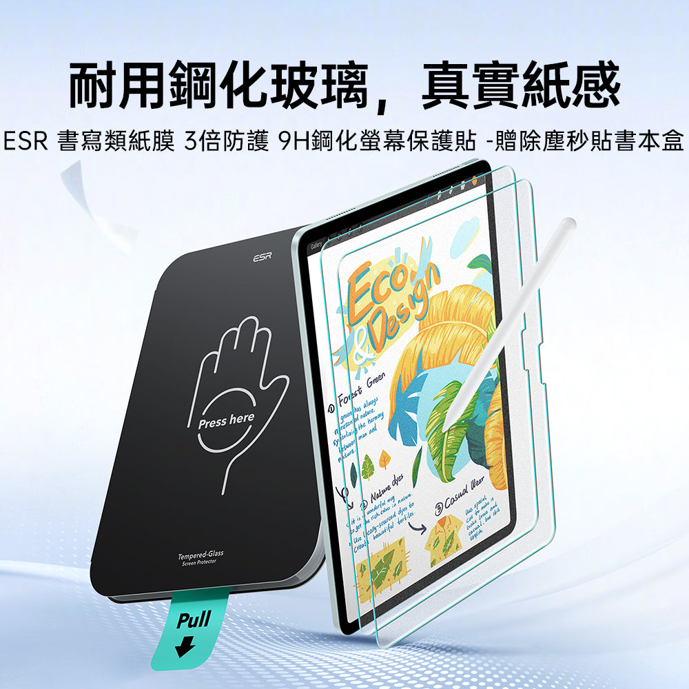ESR億色 iPad Air 11吋【2026/2025/2024】書寫類紙膜 3倍防護 9H鋼化保護貼 2片裝-贈除塵秒貼書本盒