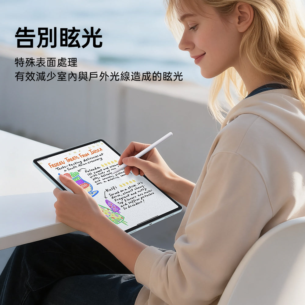 結合9H玻璃+PET砂粒,兼具保護與書寫手感